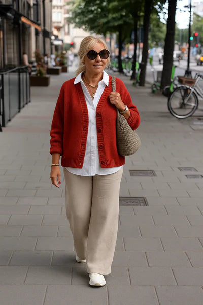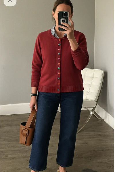 Die Elara Pearl-Button Cardigan ist die perfekte Balance zwischen Komfort und Eleganz. Sie ist aus weichem Strickstoff mit zarten Knöpfen im Perlenstil gefertigt und ein leichtes Kleidungsstück, das sich sowohl für die Frische des Frühlings als auch für die Gemütlichkeit des Herbstes ideal eignet. Ob Sie einen entspannten Tag unterwegs verbringen oder zu Hause relaxen, diese Strickjacke verleiht Ihrer Alltagsgarderobe mühelose Eleganz.